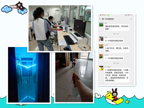 看着熟悉的校园,雅致整洁的宿舍,穿梭在84消毒液特有芳香的走道,孩子们不禁发自内心地感慨:“哪有什么岁月静好,只不过是有人替我们负重前行,现在校园生活稳定有序,少不了我们亲爱的生活老师的辛勤付出……”是的,舍小家、顾大家,疫情期间坚守岗位的高复生活老师们,每天除了做好寄宿制学校学生的一日常规管理外,还包括每日三次对所有学生进行的体温测量,从教学区到生活区,从生活区再到教学区,其间是他们不停穿梭的身影,而且在教学区测温务必做到安静高效,以确保正常的教学秩序;在生活区测温则务必要做到迅速及时,不占用学生们哪怕一点点的休息时间;同时,对每一位学生的测温情况均要认真记录,对于体温异常者还要进行二次甚至多次测量,直至上报;每日至少两次给寝室进行消毒;每天值班老师要把生活区公共区域卫生打扫干净并消毒两次(包括电梯);对身体不适特别是发烧的学生,老师们则需要一边向值班领导汇报,一边及时联系家长,并陪诊到医院,直到安全交到家长手里,交待好离校、居家、返校等方面的注意事项,才能安心回校……