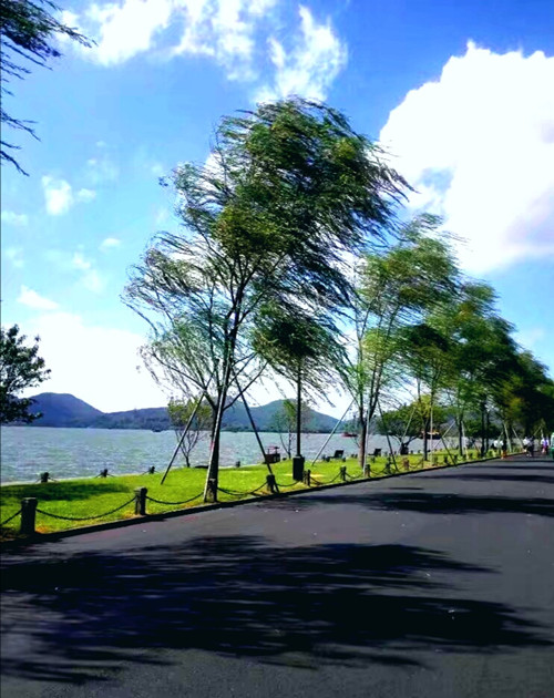 西湖的树,令人难以忘怀。那盘根错节的千年古树,或直入云霄,或俯下庞大的身躯,钻入清澈的湖水中。夏日,它们高大的身影为我们遮阳,又能为我们轻遮小雨。它们如此无私,我们只有以不伤害它们作为回报,才是给它们最好的礼物。