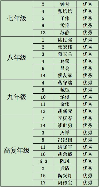 学校深入开展建设文明校园,提升文明素养,造福学生终身的活动中,上周文明建设表现突出的班级、组团宣布如下: