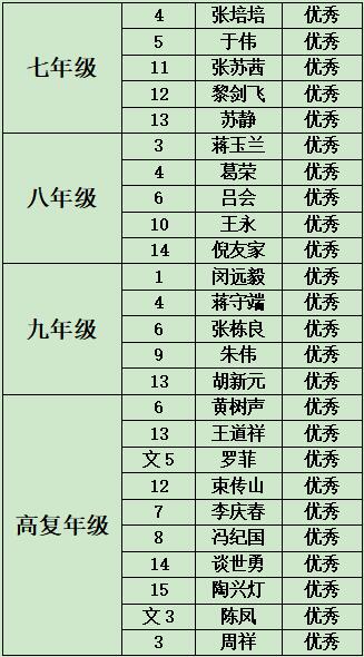学校深入开展建设文明校园,提升文明素养,造福学生终身的活动中,上周文明建设表现突出的班级、组团宣布如下: