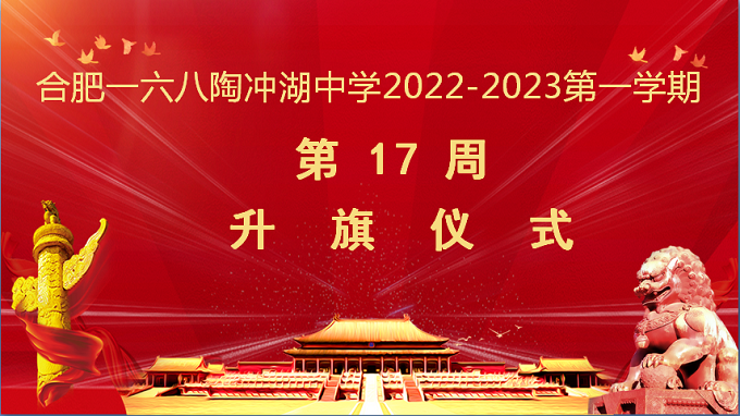 2022年12月19日上午10:30,合肥一六八陶冲湖中学举行了本学期第17周升旗仪式,基于疫情防控形式,全体师生线上参加。担任本次升旗仪式的班级是九(7)班,班主任孙东冬老师,主持人是来自九(7)班的陶怡然同学。