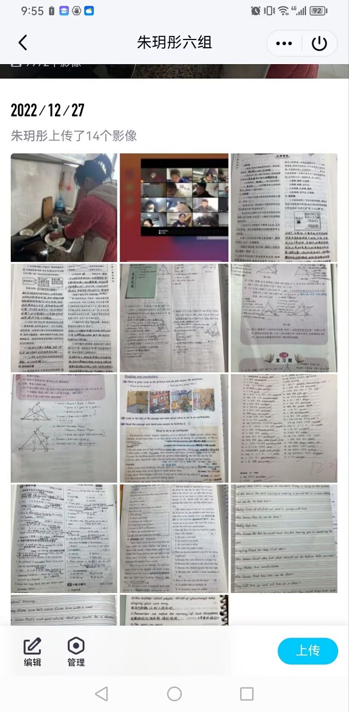 连日来,阳光六班在班主任闵远毅老师的带领下,通过家校共育、携手托举,让学生们居家不停学、成长不停歇。