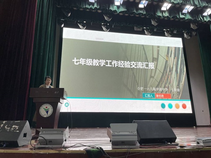 暖场视频终了,会议正式开始。谢名艳首先从年级层面与家长们交流年级管理理念和具体做法。七年级以“抓质量、促成长、严要求、做扎实”为管理目标与思路,致力于打造一支高素质的教师团队,落实“双减背景”下学生身心成长和学业发展要求,不放弃任何一个学生,让学生全体发展、全面发展、个性发展。谢名艳从安全教育、德育工作、教学常规、特色工作、家校合作五个方面与家长集中交流。