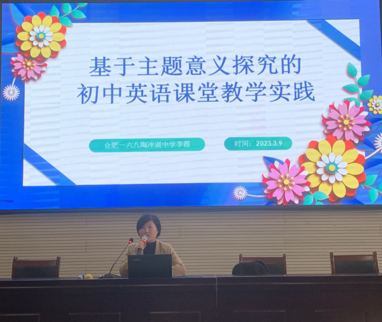 研讨活动的第三阶段,来自合肥一六八陶冲湖中学的李霞老师做题为《基于主题意义探究的初中英语课堂教学实践》的专题分享。 李老师从指导思想和理论依据、核心概念界定、主题意义探究的课堂教学设计要素、主题意义探究的课堂教学设计步骤、以及主题意义探究的课例分享等几方面就主题意义研究给出了详实而又明确的指导,值得广大一线教师探究实践。另外,李老师号召全体一线教师以教的变革引领学的变革,深耕教研,努力修炼。