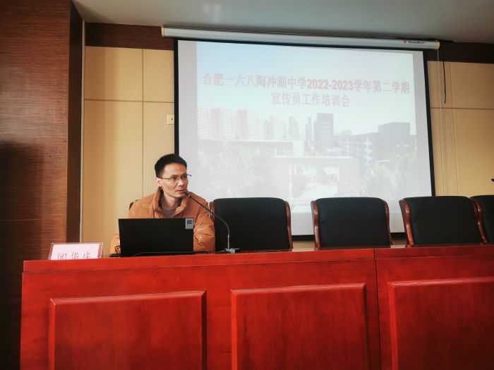 为进一步提高学校宣传员队伍思想政治素养和专业水平能力,充分发挥学校宣传工作凝聚共识,正面引导的重要作用, 3月16日上午,合肥一六八陶冲湖中学特邀合肥华文信息科技有限责任公司总经理闻华庆来校开展新闻宣传通讯员培训活动。本次培训会由办公室副主任冯晨主持,全体宣传员参加培训。党支部副书记潘国强到会并发表讲话。