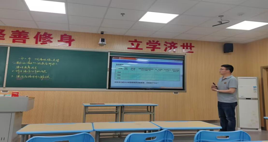此次课题选自沪科版八年级物理第九章第二节《阿基米德原理》。物理组八位教师根据自身对新课标学习的切实体会和深度思考,围绕学生素养培养的教学初心,充分准备教学,精心设计实验,他们扎实的教学基础,创新的教学思考使学生们在课堂中获得感满满。此次精彩纷呈的课堂教学比赛,充分展现出学校物理青年教师锐意进取的创新精神,充分体现了新课程理念,体现了物理学科核心素养的落实。
