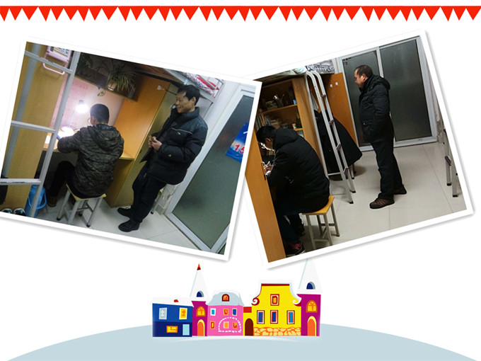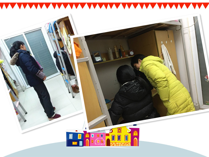为确保留校学生在校的出行安全,利用留校学生在寝室休息和自习期间,各部门紧密配合,把学校各个区域道路上积雪清理干净。防滑防摔的重点位置铺上防滑垫并竖有温馨提示牌。留校期间,各栋公寓楼每日安排两位生活老师在一楼出口处值班:检查督促学生穿戴是否保暖,鞋子是否防滑,叮嘱学生出门要小心慢行。为保障留校学生的用水用电,生活老师们提前将寝室的阳台窗及公共区的窗户关闭,防止水管冻裂。