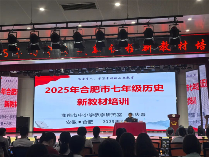 2025年8月26日,吴甘泉工作室成员赵臻和马镜云分别赴合肥一六八玫瑰园学校集贤路校区,参加了为期一天的初中历史新课程新教材培训。此次培训七年级专场特邀淮南市中小学教学研究室历史教研员李庆春老师担任主讲专家,八年级专场由安徽省教育科学研究院副院长徐贵亮主讲。