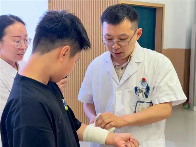 通过模拟演示和互动环节,专家们手把手指导同学们进行海姆立克法和包扎的实践操作,让抽象的医学知识变得可感可触,极大地激发了同学们的学习兴趣。现场同学们认真聆听,积极参与模拟演练,在理论与实践的结合中深刻领悟了“时间就是生命”的急救理念,掌握了在“黄金救援时间”内进行有效施救的基础技能。
