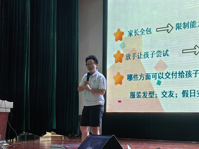 随后,张桦围绕讲座主题,从三个方面进行了深入浅出地讲解。她首先剖析了青春期孩子典型的心理特点,指出“自我意识高涨”是这一时期的显著标志,具体表现为要求独立、渴望尊重、反对权威等。针对这些特点,她为家长们提供了具体而实用的支持策略。她表示,家长需给予孩子充分的适应时间,保持对学业的合理期待,并完成从“驾驶员”到“驾校教练”的角色转变,学会放手,让孩子在引导中自主成长。最后,就青春期可能出现的心理障碍进行了科普,帮助家长提高识别与应对能力。