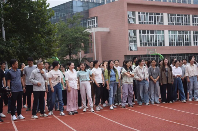 为了丰富运动会内容,鼓励全体师生积极参加体育运动,9月30日上午,部分教师参加了教职工1500米长跑项目。在场所有同学为老师们呐喊助威。