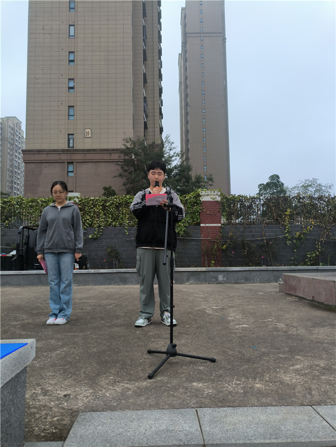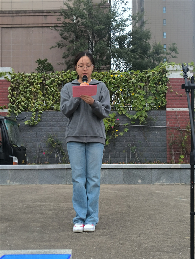 “继往开来,革故鼎新。”汪金宇同学以激昂的声音歌赞七十六载的胜利史诗。“青年之于社会,犹新鲜活泼细胞之于人身。”青年是社会的前途,是国家的希望,要始终不忘初心、牢记使命,为民族复兴贡献自己的力量。最后他借“青春须早为,岂能长少年”一句与诸君共勉。
