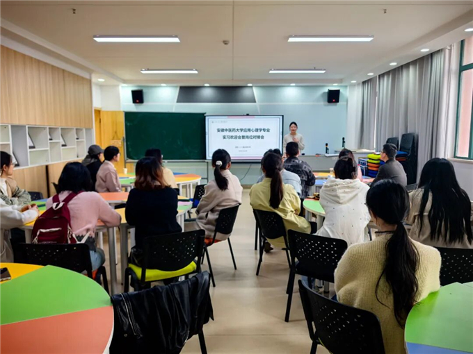 活动于14:30正式开始。在合肥一六八陶冲湖中学工作人员的引导下,安徽中医药大学人文与国际教育交流学院党总支书记叶兰兰、心理系主任张航、学科科研办查汝晶、教学实习办魏子琦及16名毕业生共同前往九楼905会议室,参加欢迎见面会。