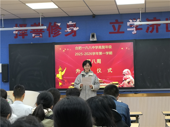 秋意渐浓,金桂飘香。合肥一六八中学高复年级举行了本学期第八周升旗仪式,本周升旗仪式由高复(16)班主持。