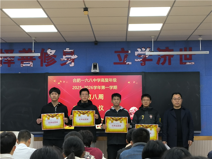 紧接着,年级德育主任朱龙江通报了上周学生违纪行为,并希望全体同学能携手共同创造良好的学习环境,营造优异的学习氛围。他随后随后宣布了获得上周和雅班级及和雅组团名单,由年级主任丁家海给获奖班级颁奖。
