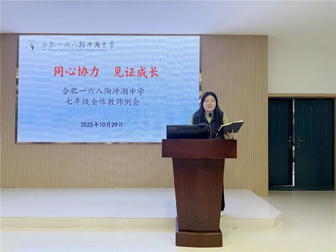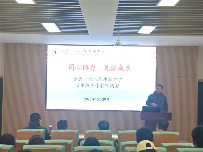 为扎实推进新学期教育教学工作,提升育人实效,近日,合肥一六八陶冲湖中学七年级组召开了全体教师例会。会议围绕“护苗成长”核心主题,聚焦学生全面发展、德育渗透与师德建设,为新阶段工作的开展指明了方向。