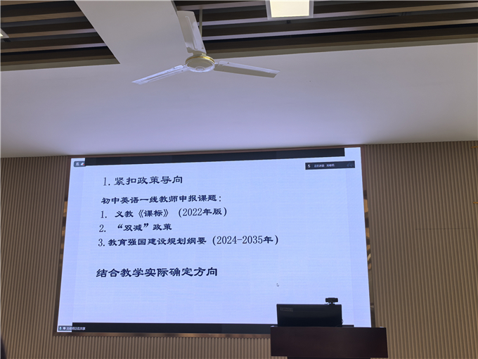 首先,刘洁新老师对课题申请的核心政策进行了详细解读。她指导广大一线教师要紧扣政策导向,结合教学实际确定选题方向,并就初中英语学科课题选择方向给出了具体建议。同时,她结合自身丰富的课题研究经验,提供了细致的申报策略建议,帮助教师明确选题方向,提升申报成功率。