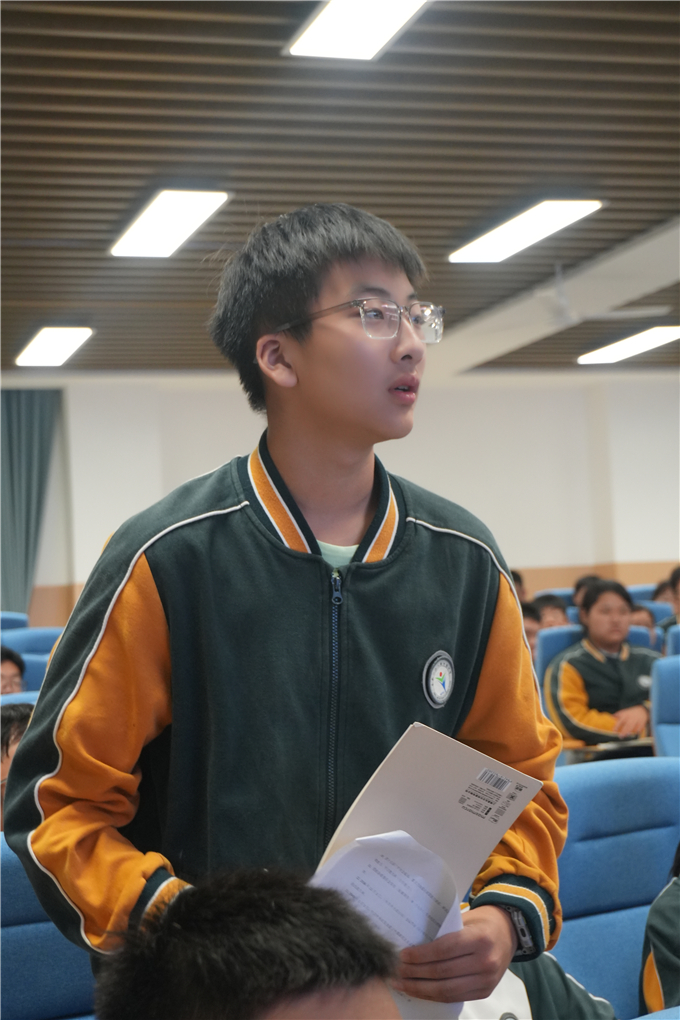 团课的后半程,张宏军将目光聚焦于同学们的“第二个家”——合肥一六八陶冲湖中学。他认真解读:“‘一六八’是我们共同的‘姓’,‘陶冲湖’是我们独特的‘名’,承载着属于我们的校园记忆。”随后,张宏军详细阐释了校训“择善修身、立学济世”的深刻内涵:“‘择善’是选择正确的方向,‘修身’是锤炼自身品格;‘立学’是勤奋钻研知识,‘济世’是心怀家国担当。”他还围绕“修行、修言、修仪、修心”展开讲解,告诉同学们,成为合格的入团积极分子、优秀的青年,既要提升学识,更要涵养品德、规范言行,将个人与学校发展、家国担当紧密结合。