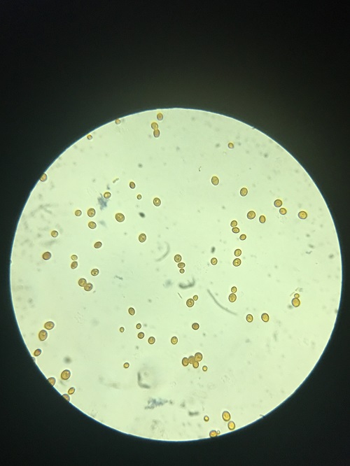 擦净盖玻片和载玻片,滴上酵母菌溶液,再用稀碘液染色,目的就是为了更好的观察酵母菌,使它的颜色更好地呈现。同时,对于显微镜的使用,同学们也是轻车熟路。在大家的互相帮助,颛孙老师的专业指导下,同学们都如愿观察到了酵母菌的出芽生殖。