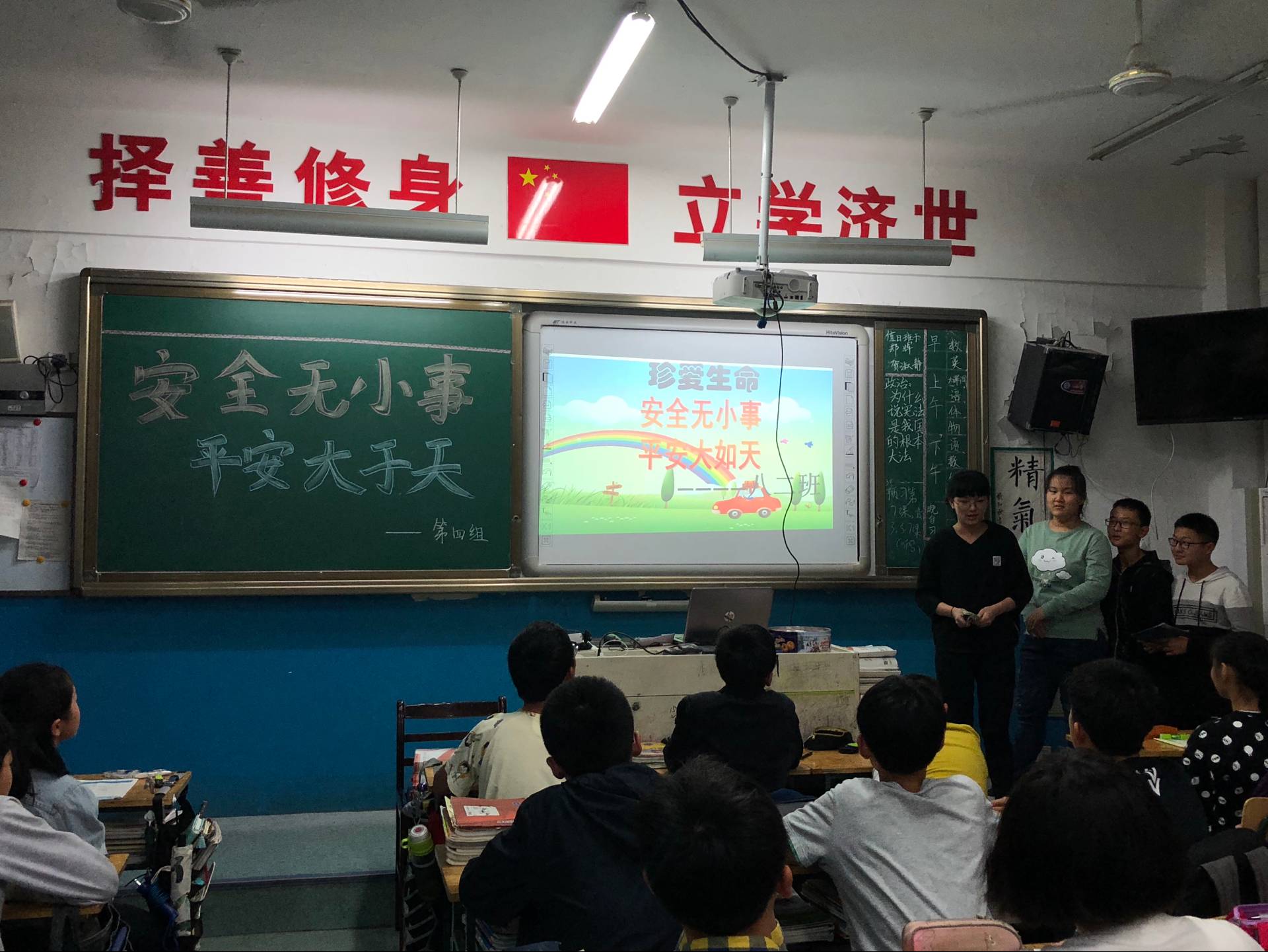 我校秉承“注重学生终身可持续发展,为学生的幸福人生奠基”的办学理念,对学生校内、校外安全尤为重视。为此,除了平时的安全防范强调以及每日的安全隐患排查外,本周我校各班召开安全方面主题班会。真正通过生命安全课程,让同学们更清楚的意识到安全问题的重要性,真正理解并践行“生命至上,安全为天”。在班会上,同学们积极举手发言,列举了很多贴合校园生活安全隐患的事例。PPT上一个个典型的事例,让同学们更加懂得自我保护的重要性,并懂得生命的脆弱与可贵。在谈到校园内的踩踏事故时,智慧的同学们又说出一个个预防踩踏事故的措施。在孩子们眼中,学校的保护措施给了他们很大的安全感。每当晚自习下课和大课间上下楼时,八年级老师会在每个楼梯楼陪伴孩子,提醒学生注意台阶,并及时制止部分同学上下楼梯时的危险动作。楼梯奔跑现象大大减少了。不仅仅是踩踏事故,危险无处不在。要做到安全,我们最主要的是做好两点。一方面我们要尽自己最大的能力,保护好他人,不要因为自己的一个无心的行为不小心伤害到他人。做任何事情前,三思而后行。另一方面我们要提高自己的防范意识,尽全力保护好自己。不积极参与危险的游戏,不带入和玩弄锋利的物品,不在课件追逐打闹等。除了在校内,校外的安全隐患也很多,例如游泳,过马路。每年因此受伤,死亡的青少年不计其数。无法屈指可数的事故,更应引起人们的高度重视。人的生命只有一次,我们不能虚度光阴,但更不能让安全隐患带走光阴。学校对待安全问题从不马虎,用行动在将对孩子的保护尽最大努力落到实处。真正践行了“生命至上,安全为天”。从一个合格的中学生的角度,从一所教学优良的学校的角度,我们过去,现在以及未来都会把安全牢记心中。防范在先,谨于思,慎于行。