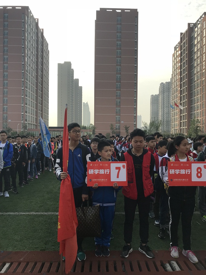 大门外的天空一 片湛蓝,大门外的满眼阳光金黄。我们走出了大门,时间是期中考试结束第二天早上的7点半。马路上的草丛依然是那么绿,绿得饱满鲜亮,草丛旁有大片大丛的小花和小草,小小的绽放竟如此鲜艳夺目,迎着朝阳,我们的研学旅行就此踏上旅途。