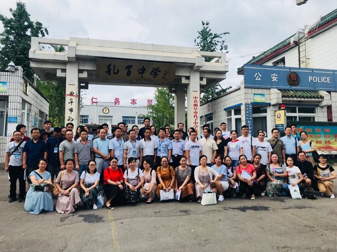 第三天行程是参观了曲阜实验中学和孔子中学,曲阜实验中学以“弘扬明德笃学精神,建设儒雅创新学校”为办学理念。校园中随处可见与传统文化相关的景观和装饰。所有教学楼内外处处都是传统文化的宣传阵地。实验中学的孔令艳主任系统讲解了他们学校的办学理念,并把自己在“小组合作制”教学模式中的实践成果与我们分享,让我们收获很大。孔子中学历史悠久,建校近百年,现今孔子中学在城乡结合部,学校努力进取,将弘扬传统和开拓创新结合打造特色学校,提升办学品味。