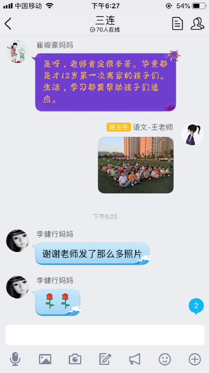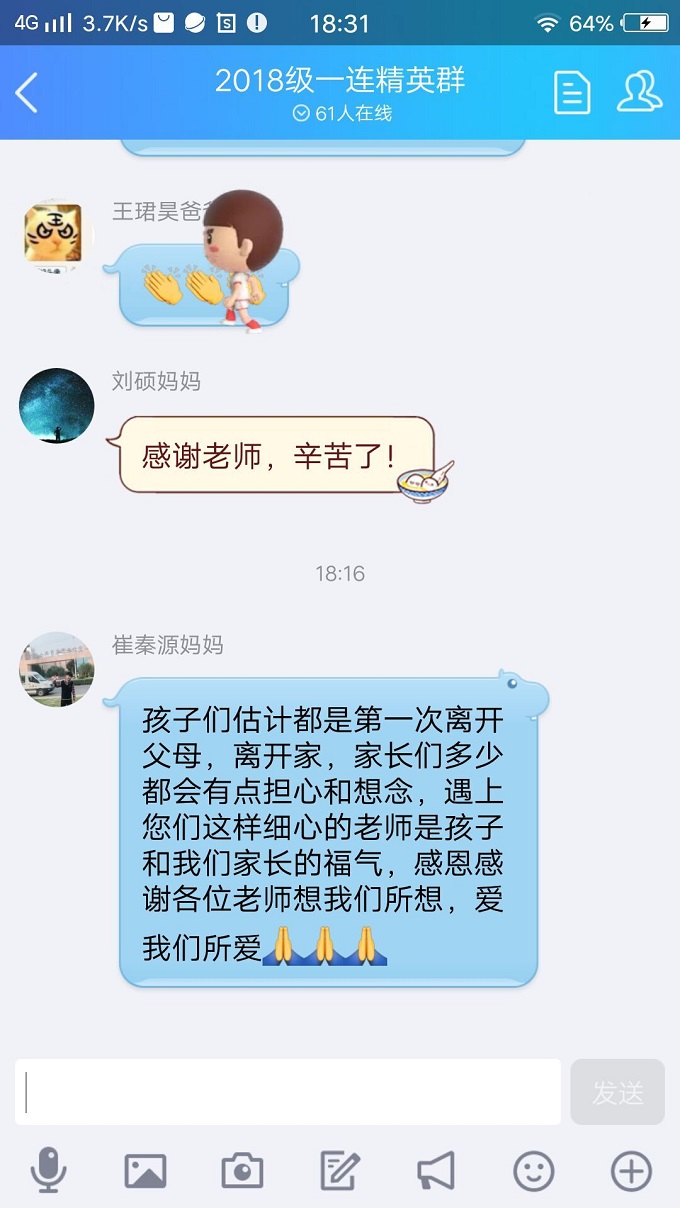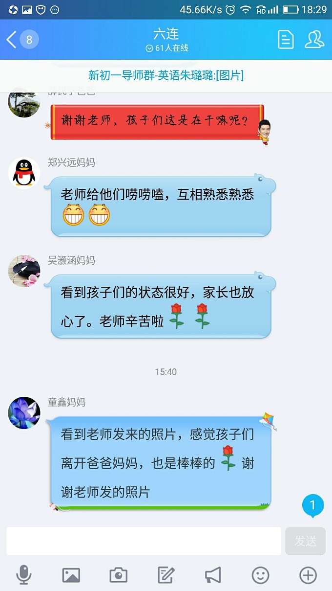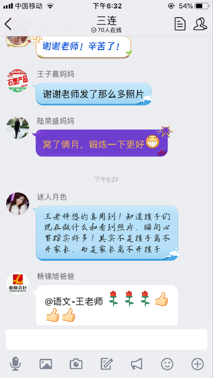 看到众多家长发来的信息,我们的老师是有成就感的。众多孩子的父母从进入校门那一刻的担心、忧心到离开学校时的放心、安心,回到家中各位老师仍然和他们保持密切的联系,让他们第一时间知道自己孩子的动态,由此而生出舒心的感觉。