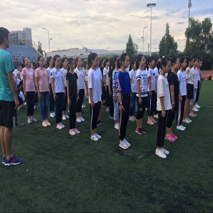今天是2018年8月31日,18级新生的入学适应教育已经接近了尾声。操场上拉开了教育成果展示的序幕,本次展示由吴勇老师主持,各班辅导员携全体同学共同参加。