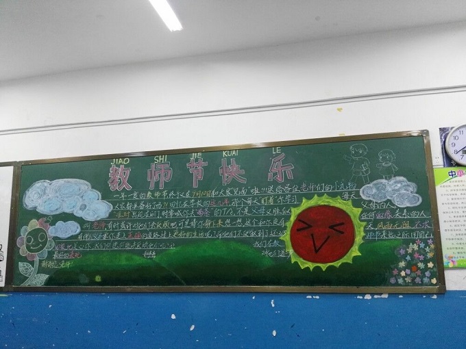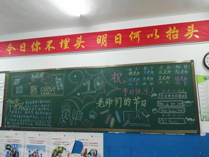 一曲赞歌唱不尽您的华丽的篇章,一支粉笔却写就了您的人生轨迹;三万桃李报答不了您的如山恩情,三千青丝染霜却谱写出您的精彩人生。在第34个教师节之际,九年级组织以“尊师爱生”为主题的板报活动,各班级通过板报向老师们表达了深深的祝福!