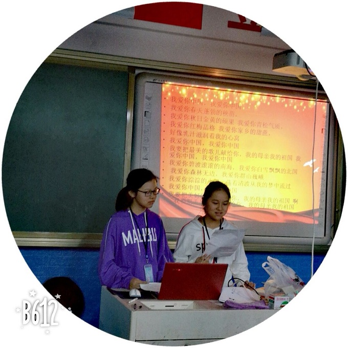 在欢度了国庆七天假期后,同学们又返回了校园。返校的当晚,幸福八班召开了《我爱你,中国》的主题班会。这次班会上,我和欧阳可悦很荣幸地成为此次班会的主持人。我们自己主持班会,是第一次,这对大家来说很新奇,但对我们来说是个挑战。为了使班会不空洞,国庆期间我们查资料、做课件,写串词,准备了很长时间。就为了给同学们一次心灵的洗礼,情感的熏陶、思想的启迪和灵魂的唤醒。