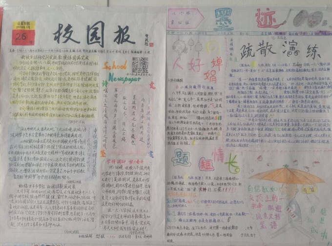 本次手抄报评比活动,充分发挥了学生的主动性,积极性。刚学习了新闻的八年级同学们按捺不住激动的心情,踊跃尝试做起小记者。同学们既分工又合作,精心准备着。本次手抄报评比活动,将文字和构图有效地结合起来,既加强了语文与美术学科的整合,又培养了同学们搜集、筛选、整理资料的动手操作能力,还使学生在评比展示活动中获得了成功体验,受到了美的熏陶。