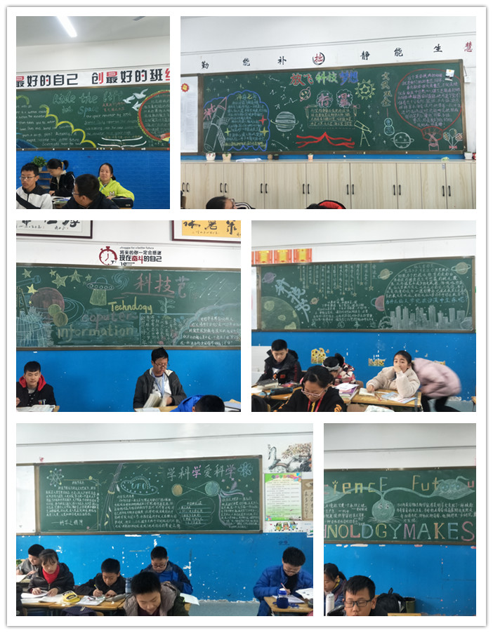 七(11)班 | 色彩绚丽,内容丰富。详细介绍了有关科学技术的发展过程,既扩大了学生的知识面,有装饰了班级,达到了良好的宣传效果.板报标题鲜艳,图案形象,字迹美观大方。