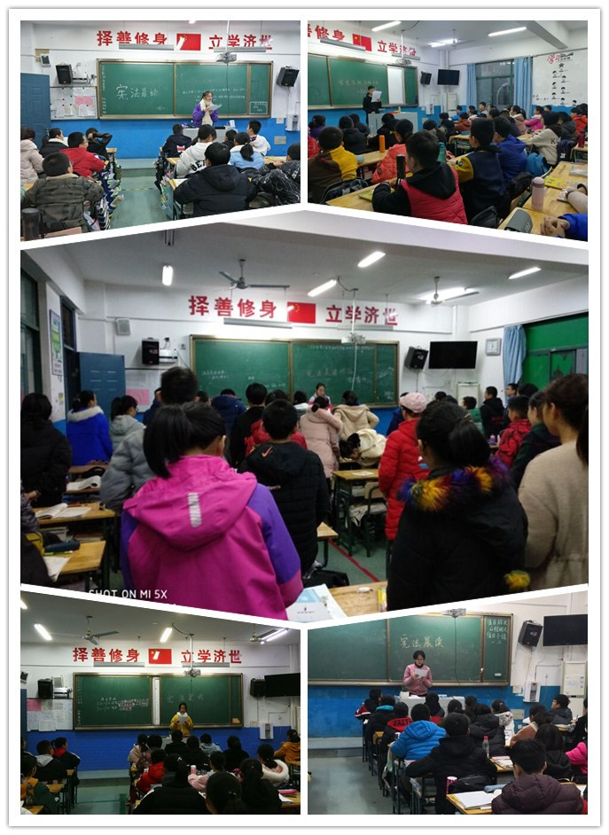 早上七时整,我校宪法晨读正式开始。在各年级主任通过网络传递介绍国家开展宪法日活动基本情况后,各班班长选择宪法序言及正文中的部分章节、条款组织学生集体朗读。所有人精神饱满,情绪激昂,大声跟随诵读,用心体会宪法的庄严与神圣。