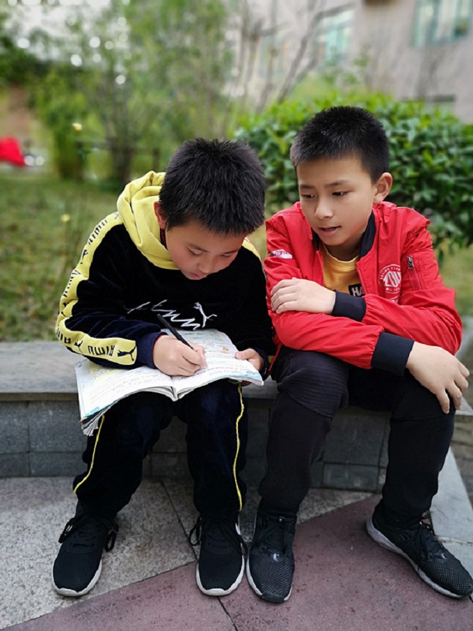 顺小路看过去,坐在石凳上的是陆卫民与李翔宇。陆卫民拿着课本与笔,他耐心地在课本上圈圈点点,与李翔宇共同找出每篇课文中的重点句型及短语,帮助他消化老师上课讲过的笔记。李翔字专心地听着小老师的教导,回答着小老师的问题,这样一遍又一遍,李翔宇终于理解了课文中的知识点。
