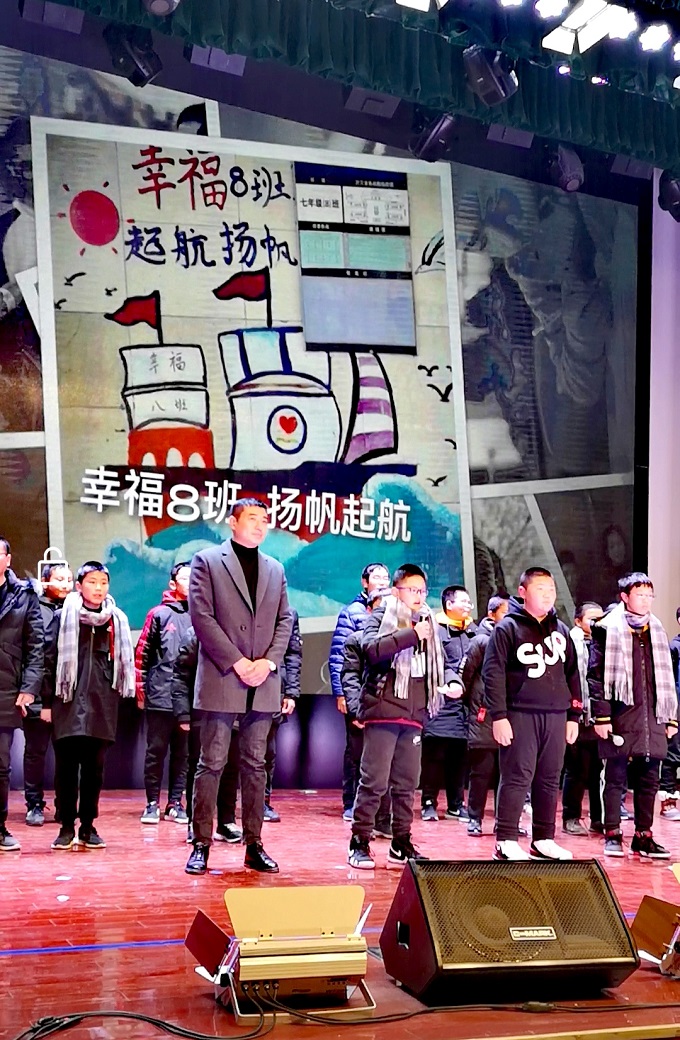 自一模二模,期中外加一个运动会后,幸福八班遭遇了严重的名誉打击,我们总别人慢上半拍,差上一截。可是,是金子总会发光,是鸿鹄总会飞翔。总有班会赢,为什么不能是八班?所以,在元旦会演上,我们重温了80年代的经典,也对自我发出了心灵叩问和誓言:我要让大家因为我的存在而感到幸福,这也是周老师的用心良苦。