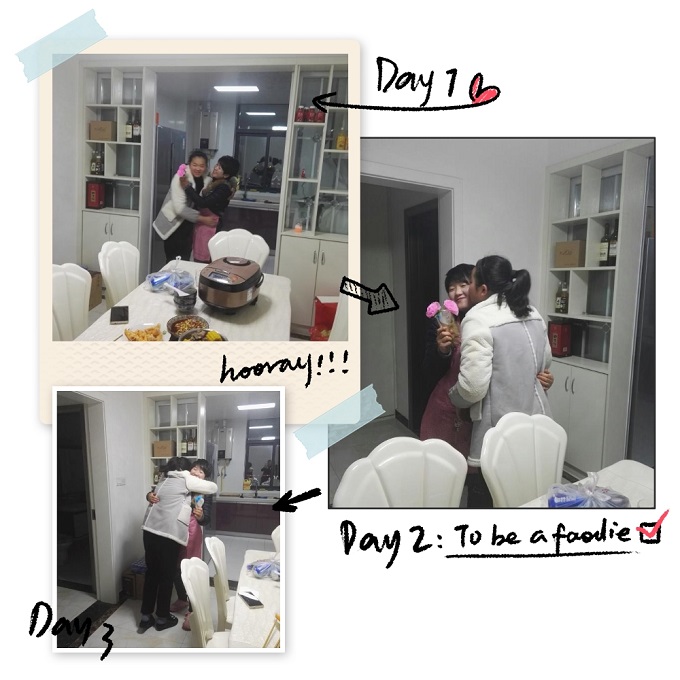 周五女神节,每组把自己组做的手工花包装成一束送老师。老师接过花,脸上露出了开心与幸福的微笑。