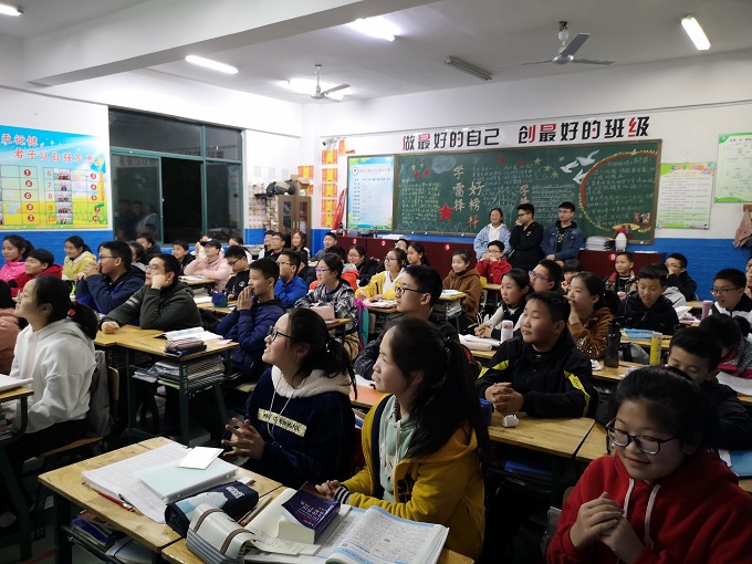 此时,周艳芳老师深情朗诵了一首她自己创作的励志诗歌《致2019年的55个宝贝们》,激励孩子们肩负责任,勇往直前。