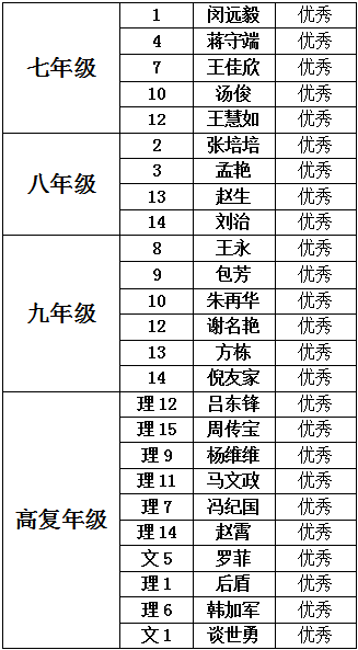 在学校深入开展建设文明校园,提升文明素养,造福学生终身的活动中,上周文明建设表现突出的班级宣布如下: