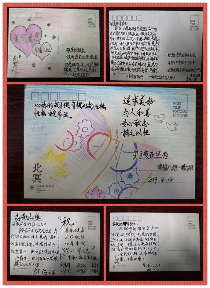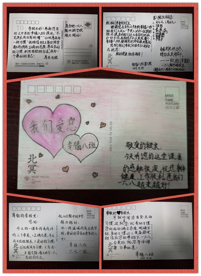 校长的谆谆教诲持续了2个小时。在这两个小时里,幸福八班的教室里不时传来幸福的笑声,孩子们听得是那么认真,笑得是那么灿烂!看,与校长合影后,他们奋笔疾书,一张张卡片里寄托了对校长真诚的感谢,更是对自己今后学习的勉励!相信这节特殊的 “百家讲堂”,会时刻铭记在他们的心中,始终伴随着他们不断前行……