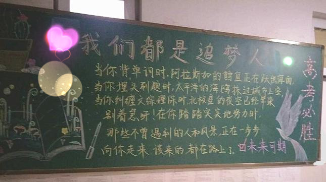 通过此次主题板报活动的开展,进一步增强了高三学子们学习的决心和信心,为即将到来的高考铺平道路,添砖加瓦。诚挚地祝愿全体同学:全力以赴,用勤奋改变人生;风雨兼程,以执著成就未来!