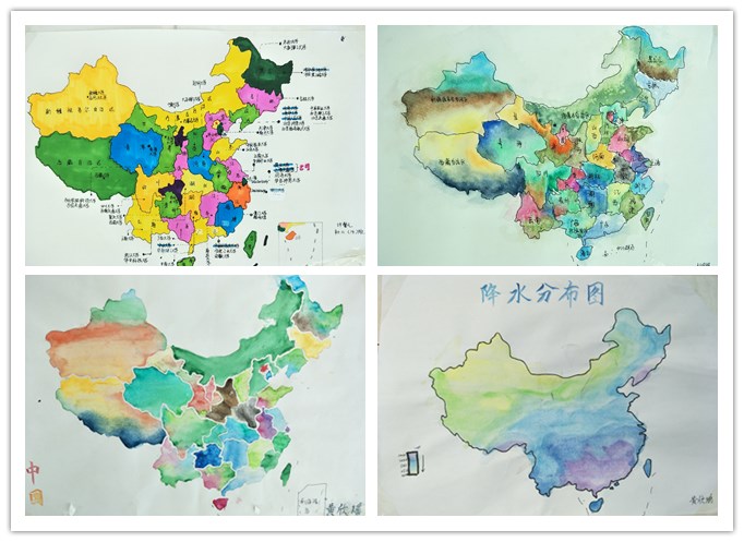 看着老师提供的图片范例同学们啧啧不已,国庆返校后同学们竞相拿出所绘制的中国地图地图,一千位读者心中又一千个哈姆雷特,每位同学的想法都不一样,有画各地美食小吃的,有画各地名牌大学的,有画咱们美丽的安徽,还有用不同颜色的谷物表示各个省区的。