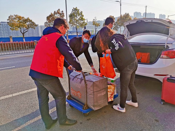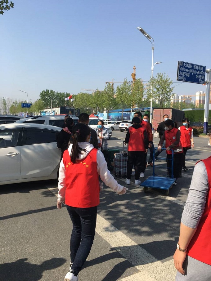 当天微风吹拂,春光明媚,学生返校的步伐是那么的轻松愉悦,学子们携带着大包小包的行李,欢喜归来,但家长们却满怀担忧。疫情原因,家长不能进校送孩子及大量行李进宿舍,孩子们该如何把行李带到宿舍?
