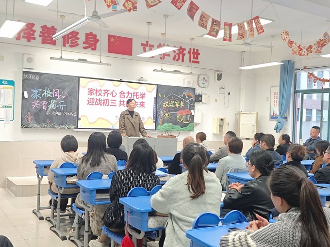 随着会堂集中讲座的结束,家长学校进入第二阶段——班级专场交流。各班主任精心打磨课件,围绕班级整体现状、九年级学习节奏与学生个体表现,向家长们细致呈现孩子们的在校情况:从课堂状态到作业质量,从心理变化到习惯养成,每一个细节都凝聚着老师的用心。此外,各班语文、数学老师全程参与,结合学科特点,针对性分析班级学科优势与提升空间,为家长提供“一对一”的学科指导建议,让家庭教育更具方向感与实效性。