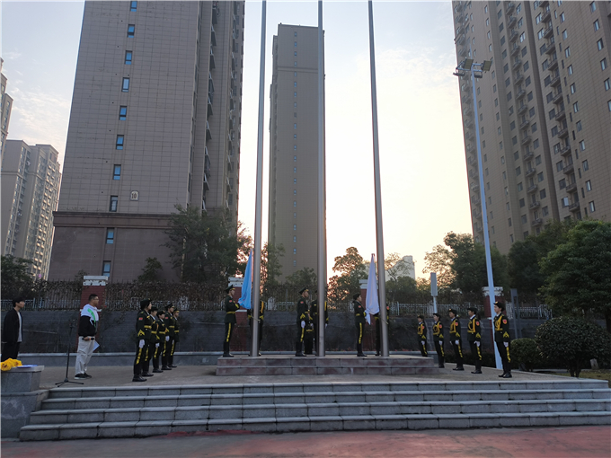 仪式伊始,国旗护卫队的队员们迈着整齐划一的步伐走向旗杆,他们身姿挺拔,眼神坚定,每一步都饱含着对国旗的崇敬。伴随着激昂的《义勇军进行曲》,五星红旗缓缓上升,那抹耀眼的红色在蓝天的映衬下格外醒目。全体师生肃立行注目礼,高唱国歌,嘹亮的歌声回荡在校园上空。此刻,红旗飘扬不仅是国家尊严与民族精神的象征,更承载着新时代好少年对传统美德的传承之责,为“重阳敬老”主题赋予了更厚重的意义。