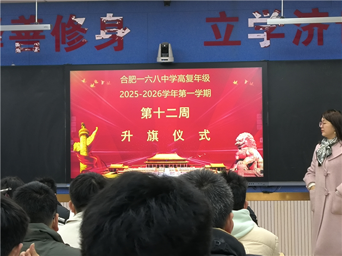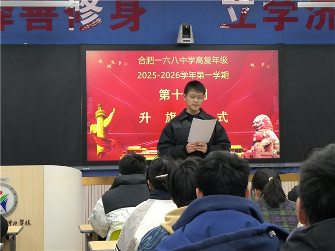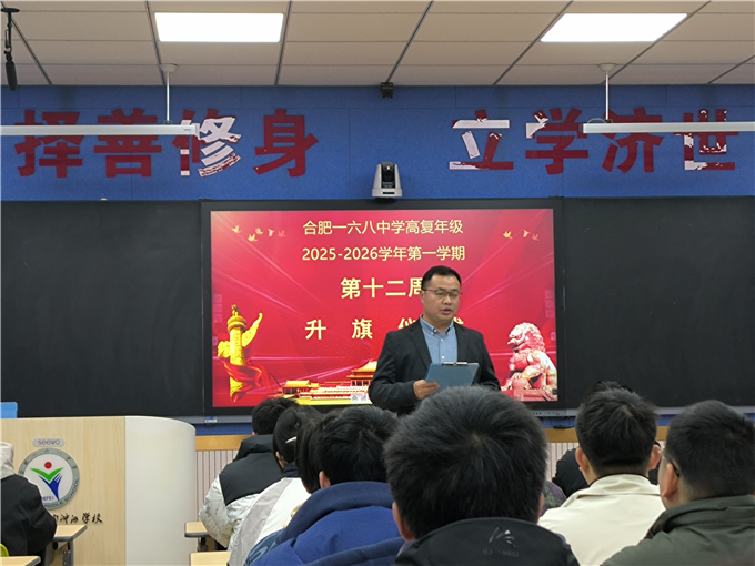 寒风凛冽却依然抵挡不住同学们不断奋进的脚步,在这冬意渐浓的清晨,怀揣着对梦想的追寻,同学们迎来了合肥一六八中学高复年级本学期第十二周的升旗仪式。本周升旗仪式由高复(17)班主持。