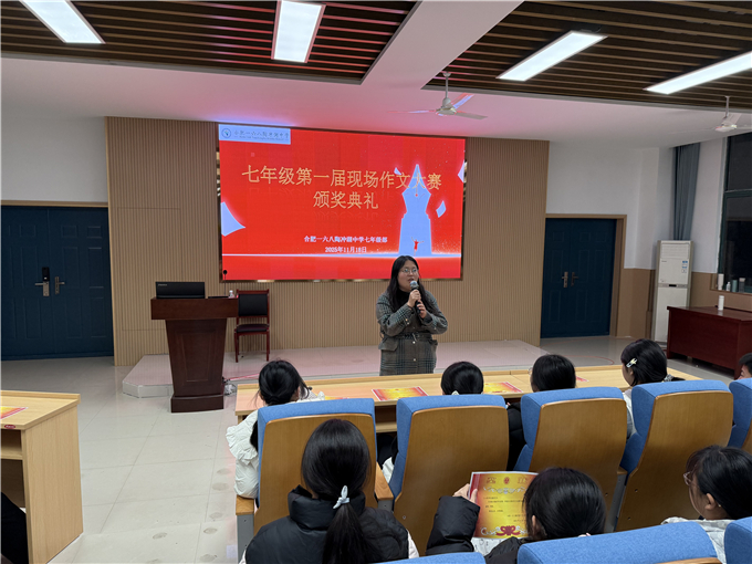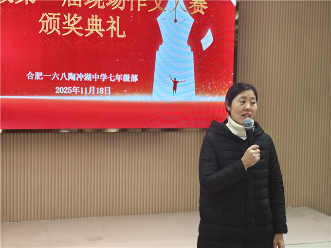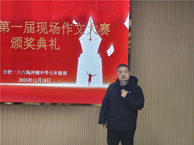 当笔尖在稿纸上轻舞,文字便有了温度;当思绪在纸页间流淌,青春便有了回响。为点燃七年级学子的文学创作热忱,搭建一个绽放写作才华的璀璨舞台,合肥一六八陶冲湖中学七年级部于 2025年11月18日,以一场庄重而热烈的颁奖典礼,为第一届现场作文大赛画上了圆满句号。