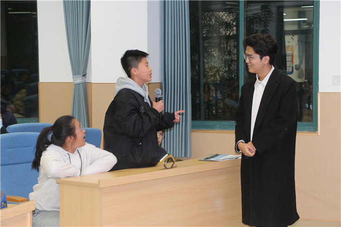 自由讨论意犹未尽,趣味语言小游戏将氛围推向高潮。“因果接龙”要求同学们快速反应、构建逻辑推导结果,考验临场应变与思维连贯性;“逻辑看图”则需通过细节观察提炼核心信息并清晰表达,全方位提升语言运用与理解能力。轻松氛围中,同学们逐渐掌握清晰表达、精准反驳、有效倾听等辩论技巧,真切领悟到辩论是逻辑思维与语言艺术的完美融合。