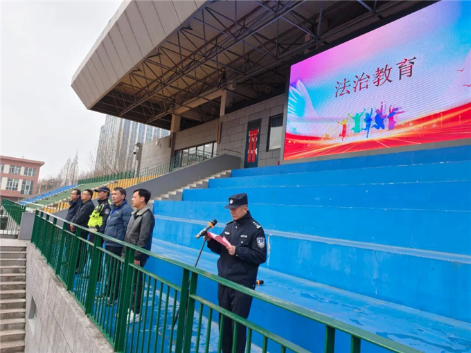 春启新程,逐梦前行。为深入践行立德树人根本任务,切实筑牢校园安全防线,护航全体学子健康快乐成长,合肥一六八陶冲湖中学在新学期开学典礼上,特别邀请学校法治副校长、三十头派出所民警万世春,以及辖区交警大队李飞警官来到学校,分别开展法治教育与交通安全专题宣讲,为全体师生送上一堂干货满满、意义深远的“开学第一课”,拉开新学期校园安全工作的序幕。