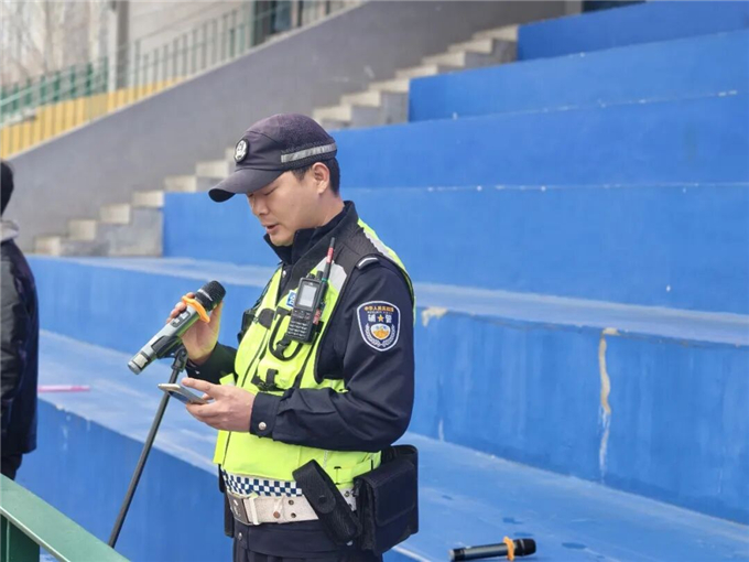 随后,李飞警官则聚焦学生上下学交通安全重点,结合辖区交通实际和学生出行常见隐患,开展针对性宣讲。他通过典型交通案例警示,详细讲解了步行、骑行、乘车等场景的安全注意事项,重点强调乘坐电动车需全程规范佩戴安全头盔、私家车接送学生需规范停放、步行需遵守交通信号灯和斑马线规则,明确未满16周岁严禁骑行电动自行车上路的规定,并向全体学子发出“文明出行、安全同行”的四点倡议,引导学子们树立安全出行意识,争做文明交通的先行者、实践者和传播者。