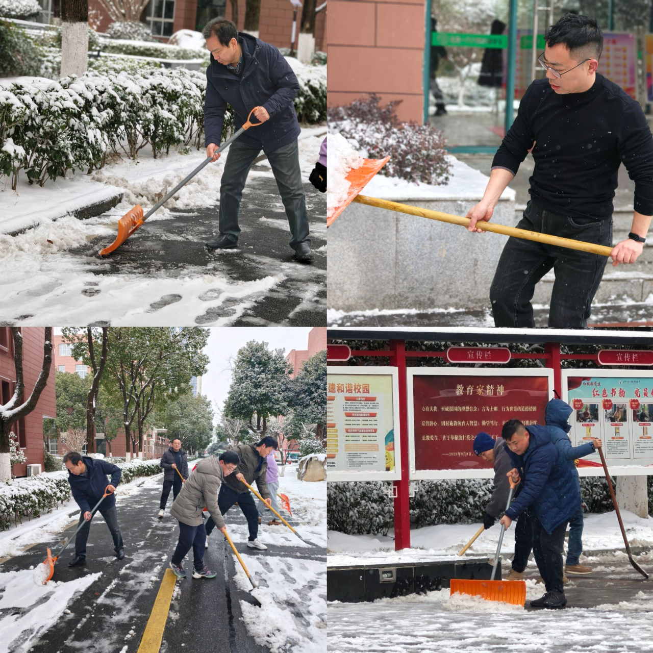 此次铲雪除冰行动,不仅及时消除了校园安全隐患,保障了教学工作的顺利进行,更展现了党员教师的先锋意识与全体教师的责任担当。大家用行动践行责任,以奉献守护成长。雪后的校园,道路洁净,秩序井然,全体教师在此次铲雪行动中凝成的向心力与传递的温情,成为冬日里最温暖的图景!